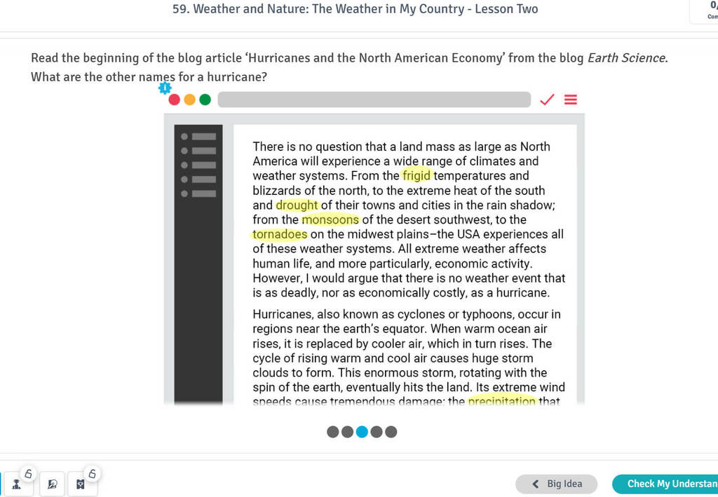 Pada platform Alef, terdapat beberapa topik mengenai isu lingkungan. Di sini siswa belajar kosakata dan frasa yang sering digunakan, baik dalam berdiskusi maupun menuliskan artikel tentang lingkungan. Terdapat juga audio dan video yang dapat melatih siswa mendengarkan dan berbicara mengungkapkan kembali apa yang mreka dengar.